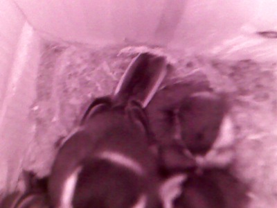 A mai napon leszedtük az eddig csak a beépítettwebkamerával megfigyelt odút. A kertben közvetlenülaz erkélyünk mellet egy lucfenyő magasodik. Márciusközepén egy szabványos B odúba beszereltem egyinfravörös ledekkel szerelt webkamerát. A képet egyszámítógépen lehet megjeleníteni, 2 db 3 méteresUSB hosszabbító közbeiktatásával.A kamera bevált: bár nem sikerült az élességet azodún belüli kis távolság miatt jól beállítani – ezt majdegy odútető emelő keret beiktatásával korrigálom – ésa látótér sem fedte le a teljes odúbelső, azonban akapott kép így is sok információt továbbított. Munkaután sokszor az első utam a géphez vezetett.Március végén az odu teljesen fel volt töltvefészekanyaggal. És a tojó rendszeresen benttartózkodott. Csak pillanatokra sikerült tojásokatmegpillantani, minden távozás előtt gondosanbetakargatta őket. Aprilis 12-én már hét tojás látszotta látótérben. Az első csőrt május hetedikén sikerültmegpillantanunk. A mai ellenőrzés során négy fiókáttaláltunk ahogyan azt már a belső felvétel is mutattaKészülök a másod költésre!